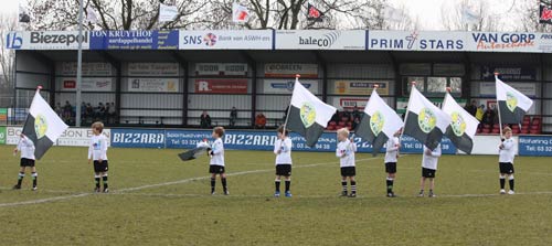 Sportpark Schildman - 13 mrt. Zaterdag moest ASWH thuis voetballen tegen Montfoort. De eer was dit keer aan teams F2 en F3 om hun helden te begeleiden op het veld.